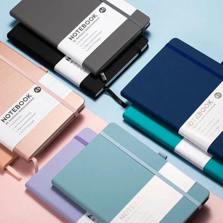 - Features: Lockstitch binding, pen ring, cover elastic, bookmark streamer